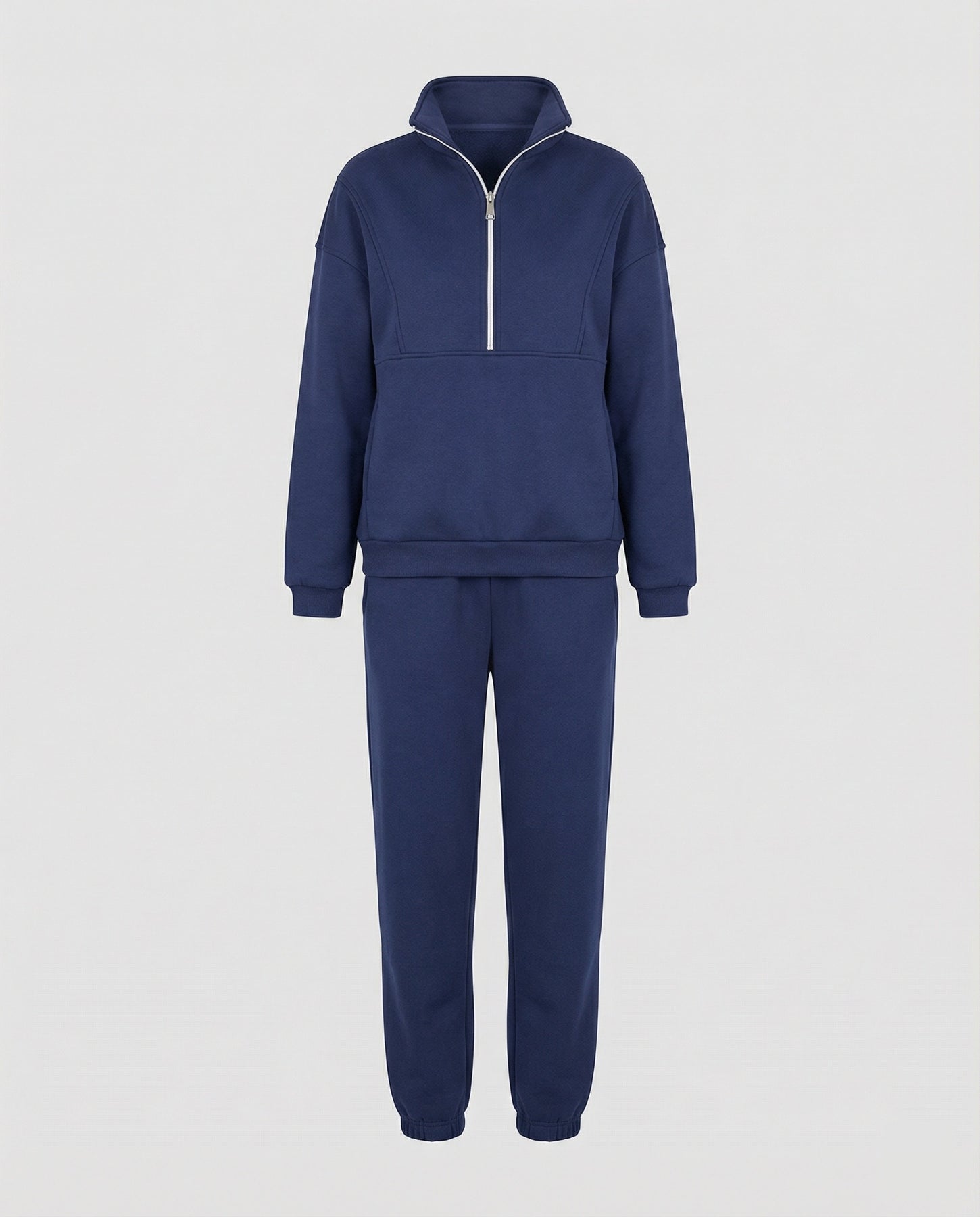 Diese praktische Kombination aus einem 2-teiligen Trainingsanzug-Set ist optimal für sportliche Aktivitäten und gemütliche Stunden geeignet. Dank der perfekten Passform und der angenehmen Stoffe bietet dieses Set maximalen Komfort, sei es beim Training oder einfach nur zum Entspannen. Es besteht aus zwei Teilen, die perfekt zueinander passen, sodass Sie immer das passende Outfit griffbereit haben. Egal, ob Sie sich für einen legeren oder sportlicheren Look entscheiden, dieses Trainingsanzug-Set ist eine vielseitige Ergänzung Ihrer Garderobe. Mit seiner Langlebigkeit und dem modernen Design ist dieses Set ein Must-Have für alle, die Komfort und Stil gleichermaßen schätzen.