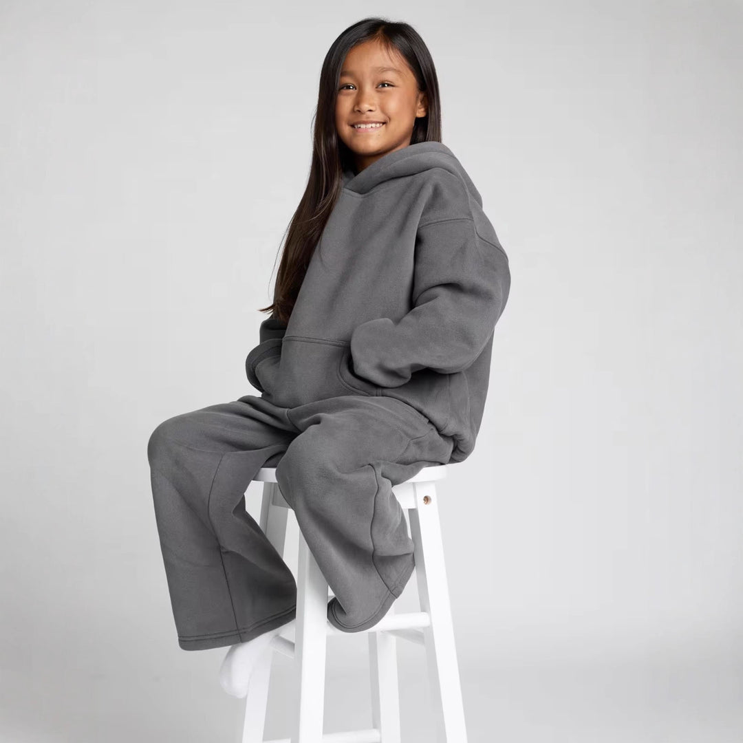 Damen gemütlicher Fleece-Loungewear-Anzug mit Kapuze und weiten Beinen Heidi-Mode