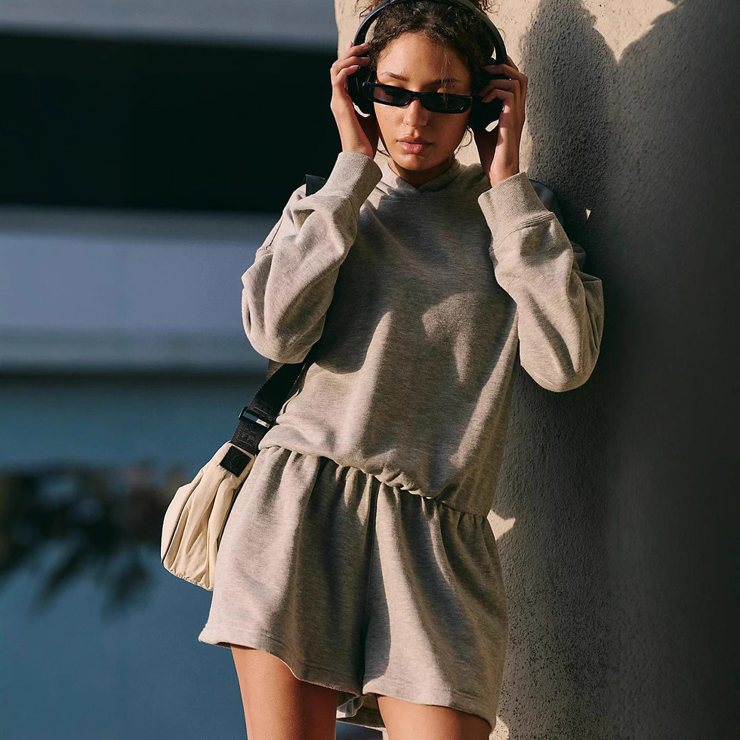 Damen Freizeit-Jogginganzug mit innovativem Kapuzendesign und bequemen Taschen Heidi-Mode