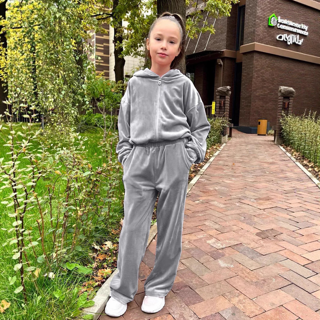 Damen Fleece-Loungewear-Set mit Kapuze und elastischem Bund Heidi-Mode