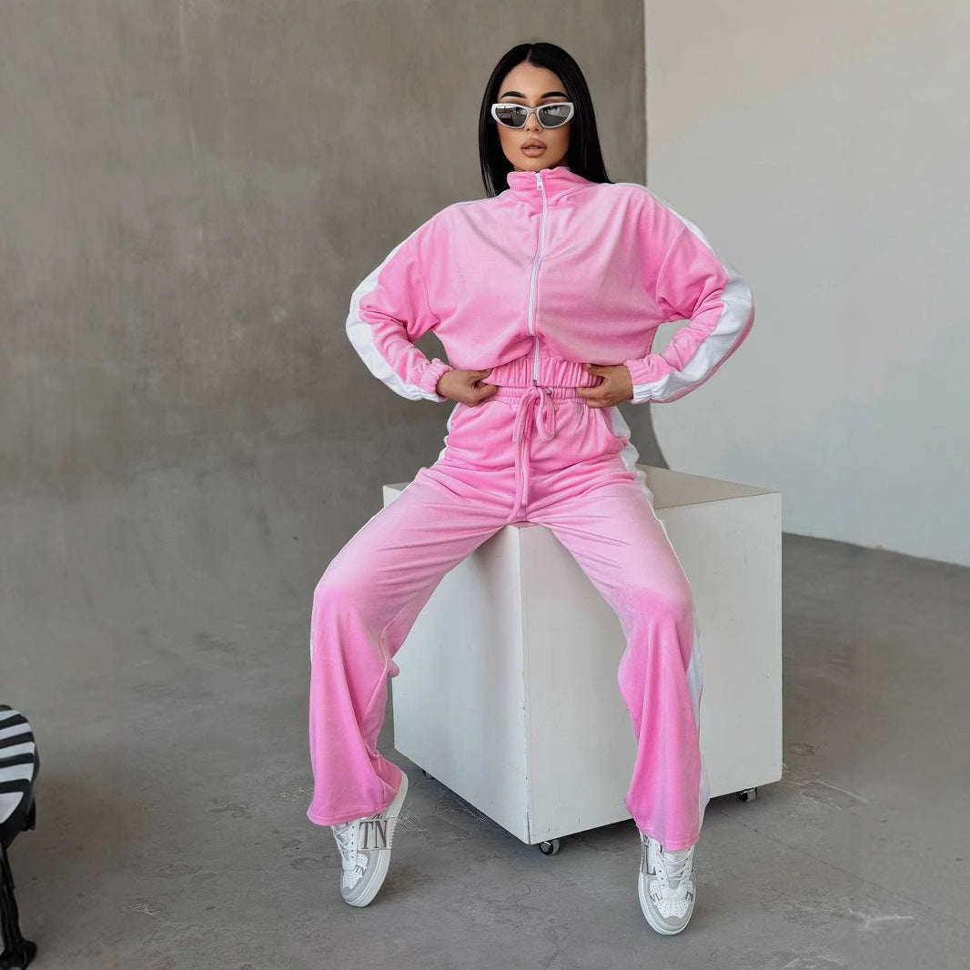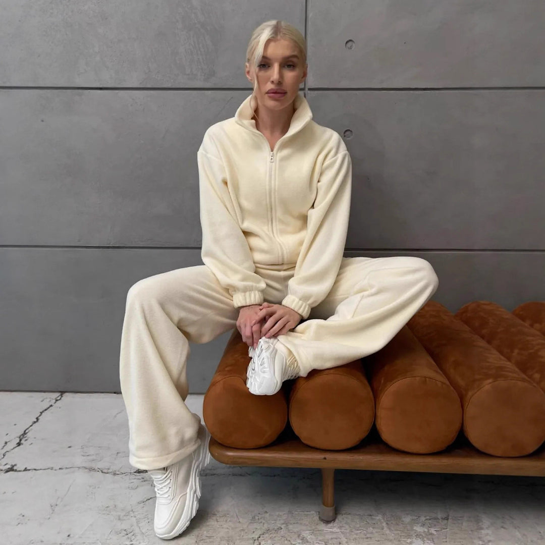 Damen Elegantes Fleece-Trainingsset mit hohem Kragen und weitem Bein Heidi-Mode