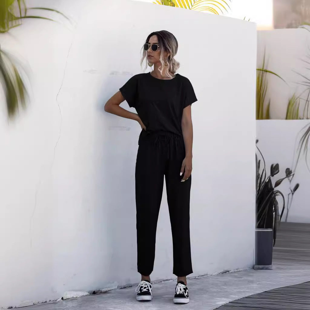 Damen Loungewear-Anzug mit elastischem Bund und großzügigem Schnitt Heidi-Mode