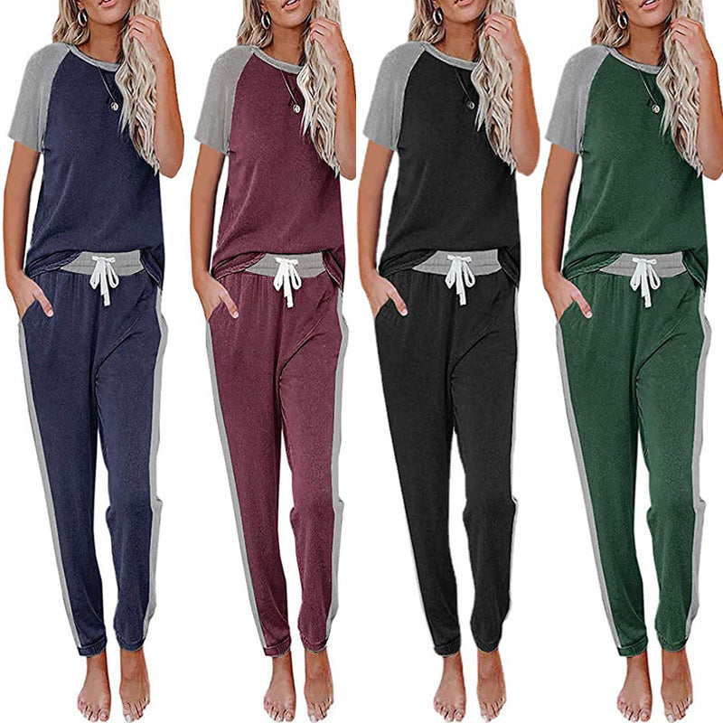 Damen Legerer Loungeanzug mit Kontrastärmel und elastischem Bund Heidi-Mode