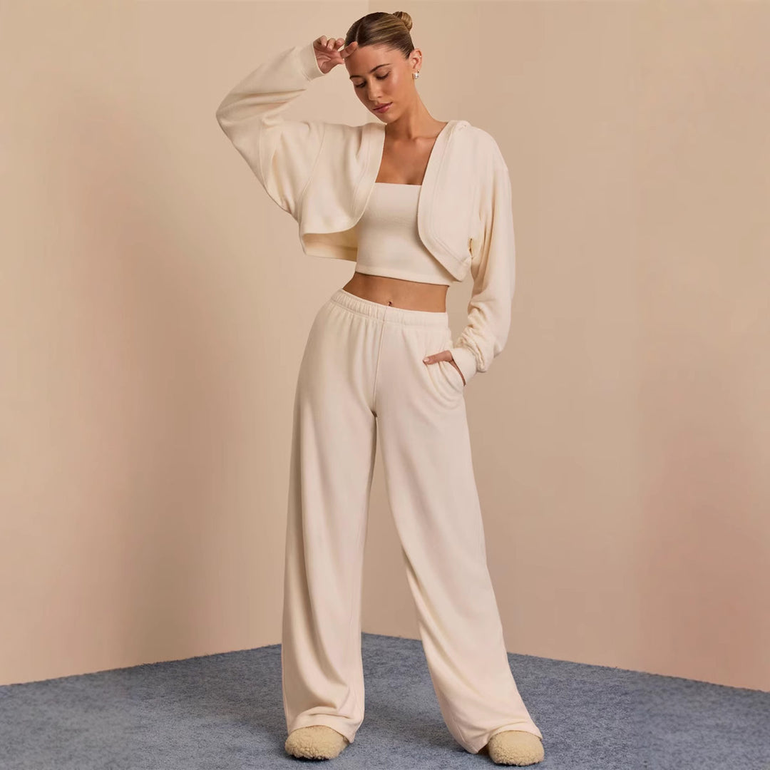 Damen Loungewear Ensemble mit weitem Schnitt und cropped Oberteil Heidi-Mode