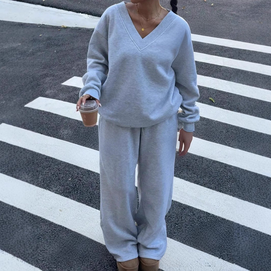 Damen lässiges V-Ausschnitt Sweatshirt und weite Jogginghose Heidi-Mode
