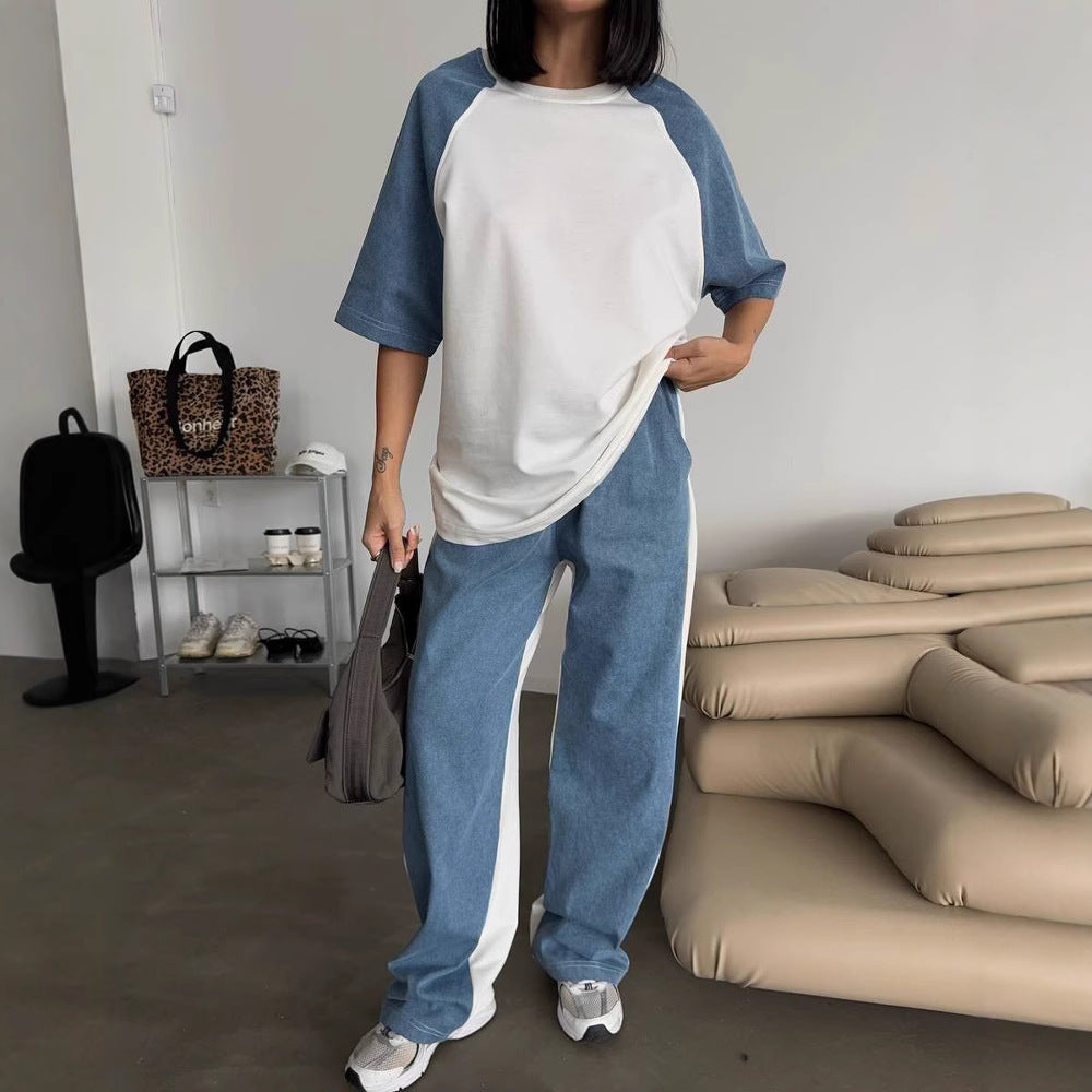 Damen lässiges Sportanzug-Set mit oversized Oberteil und weitem Bein Heidi-Mode