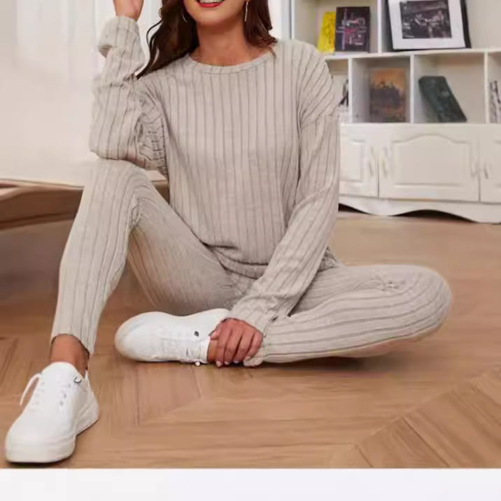 Damen Lässiges Strick-Set mit Gerippter Struktur und Weitem Schnitt Heidi-Mode