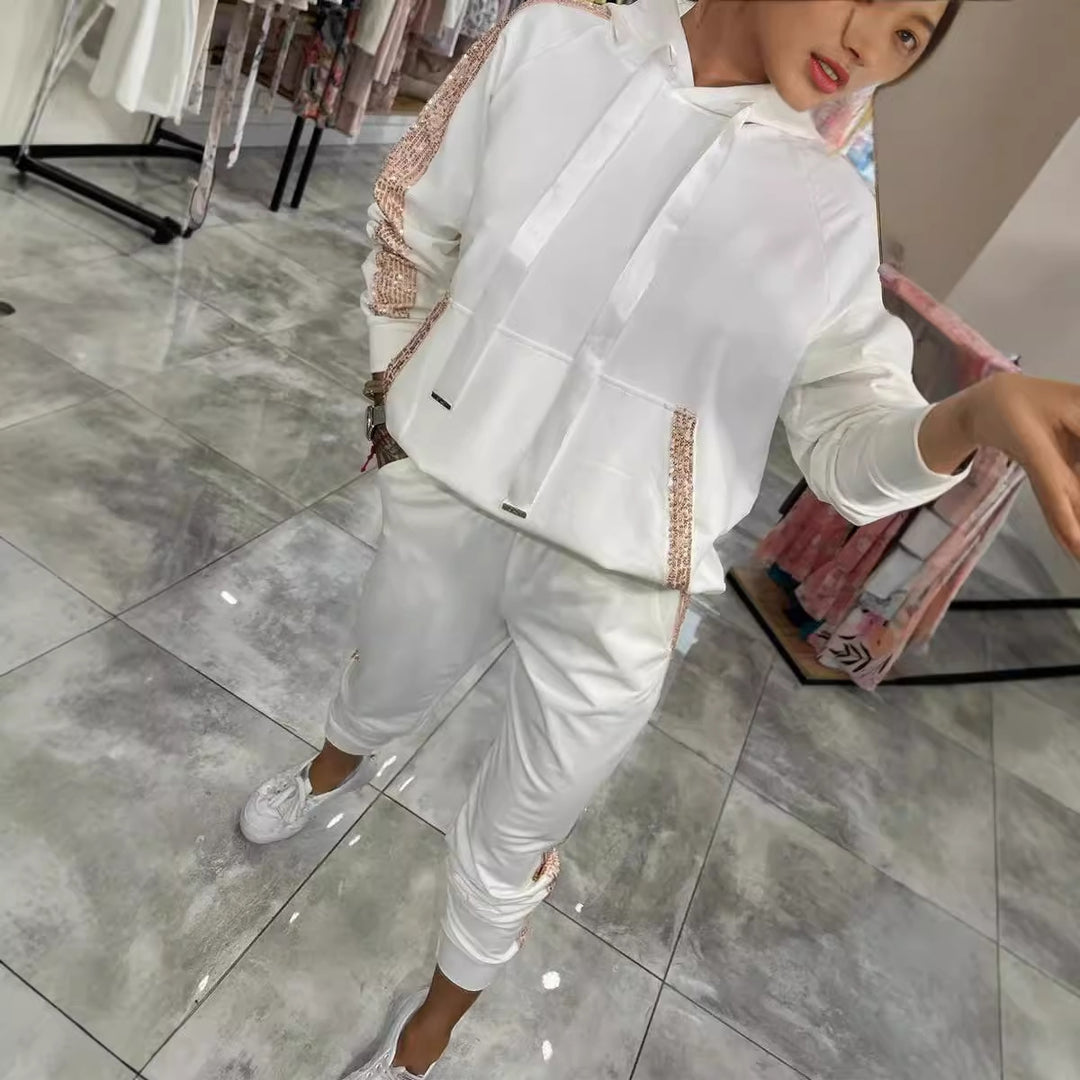 Damen lässiges sportliches Set mit weiten Hosen und Reihe von besonderen Details Heidi-Mode