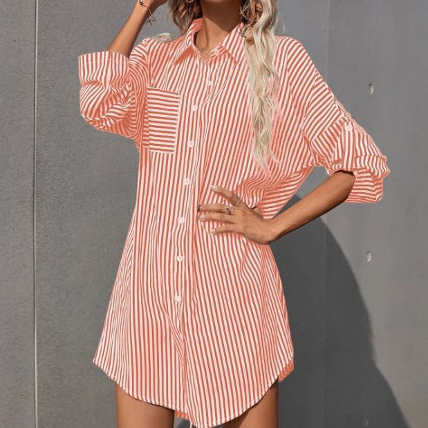 Damen Hemdblusenkleid im lässigen Stil mit Streifenmuster Heidi-Mode