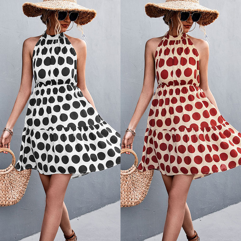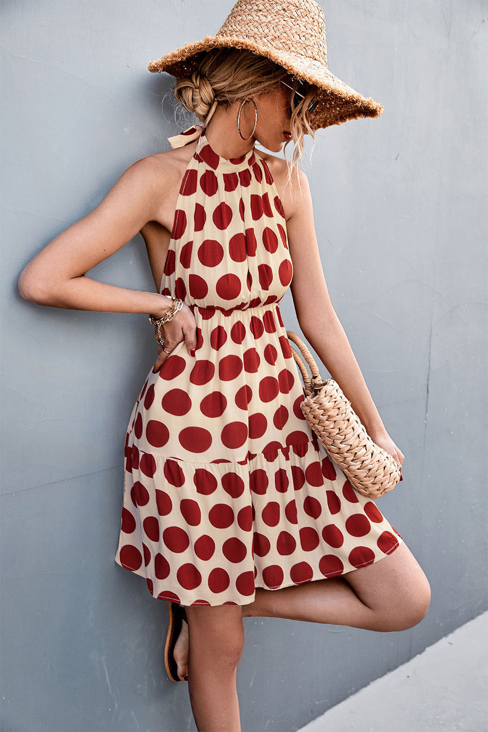 Damen luftiges Halterkleid mit Punkten und voluminösem Rock Heidi-Mode