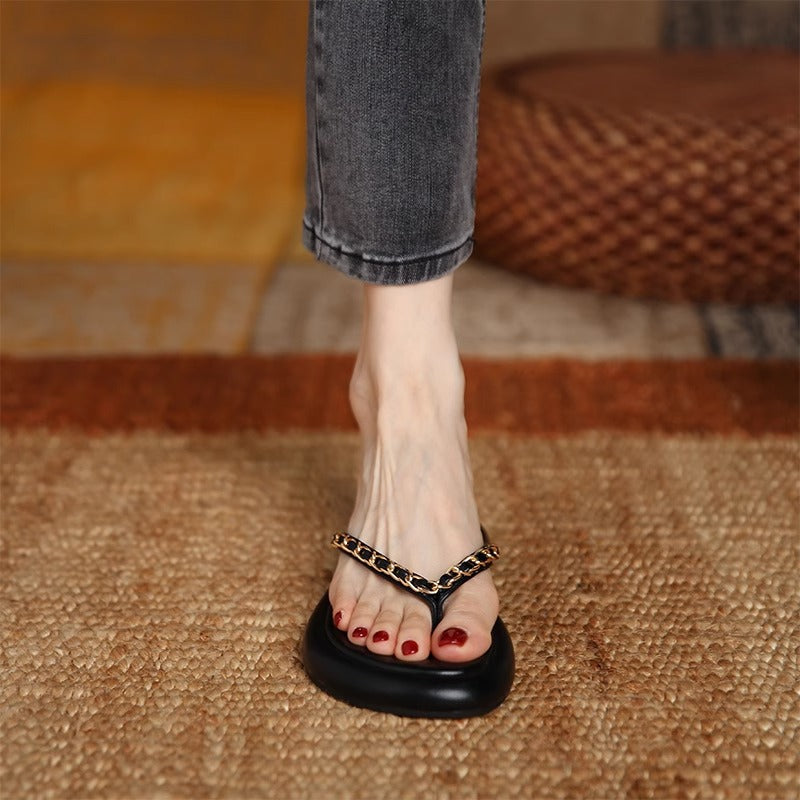 - Schickes Ketten-Detail: Das auffällige Ketten-Design verleiht den Sandalen einen luxuriösen Touch und macht sie zum Blickfang.