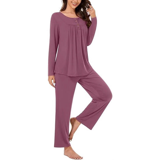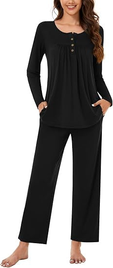 • Elegantes Design: Mit den modischen Knopfdetails und dem femininen Schnitt ist dieser Schlafanzug nicht nur funktional, sondern sieht auch stylisch aus.