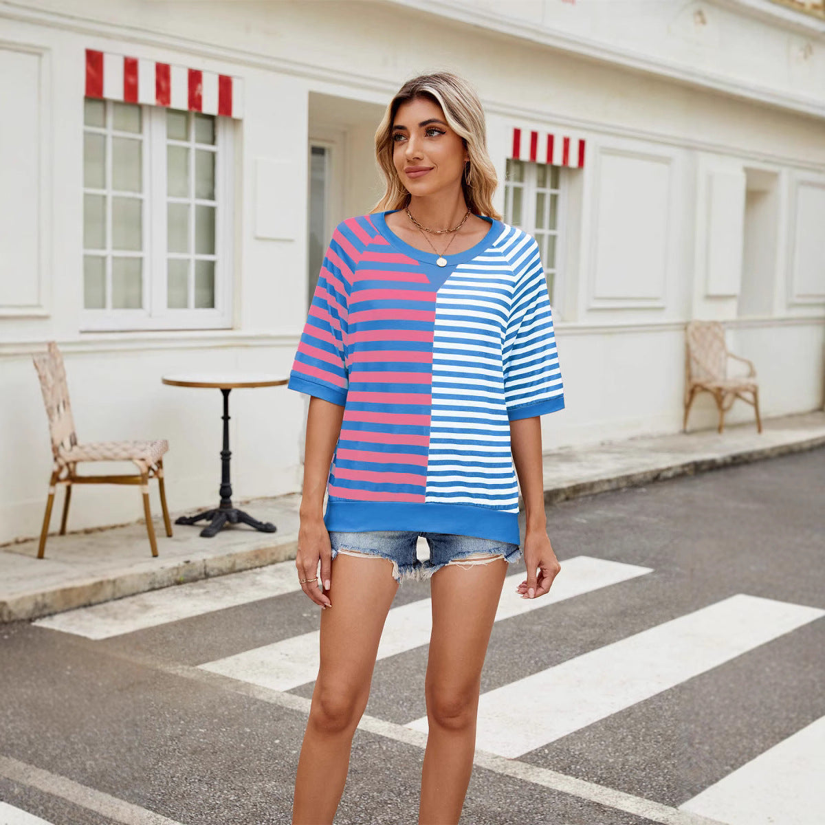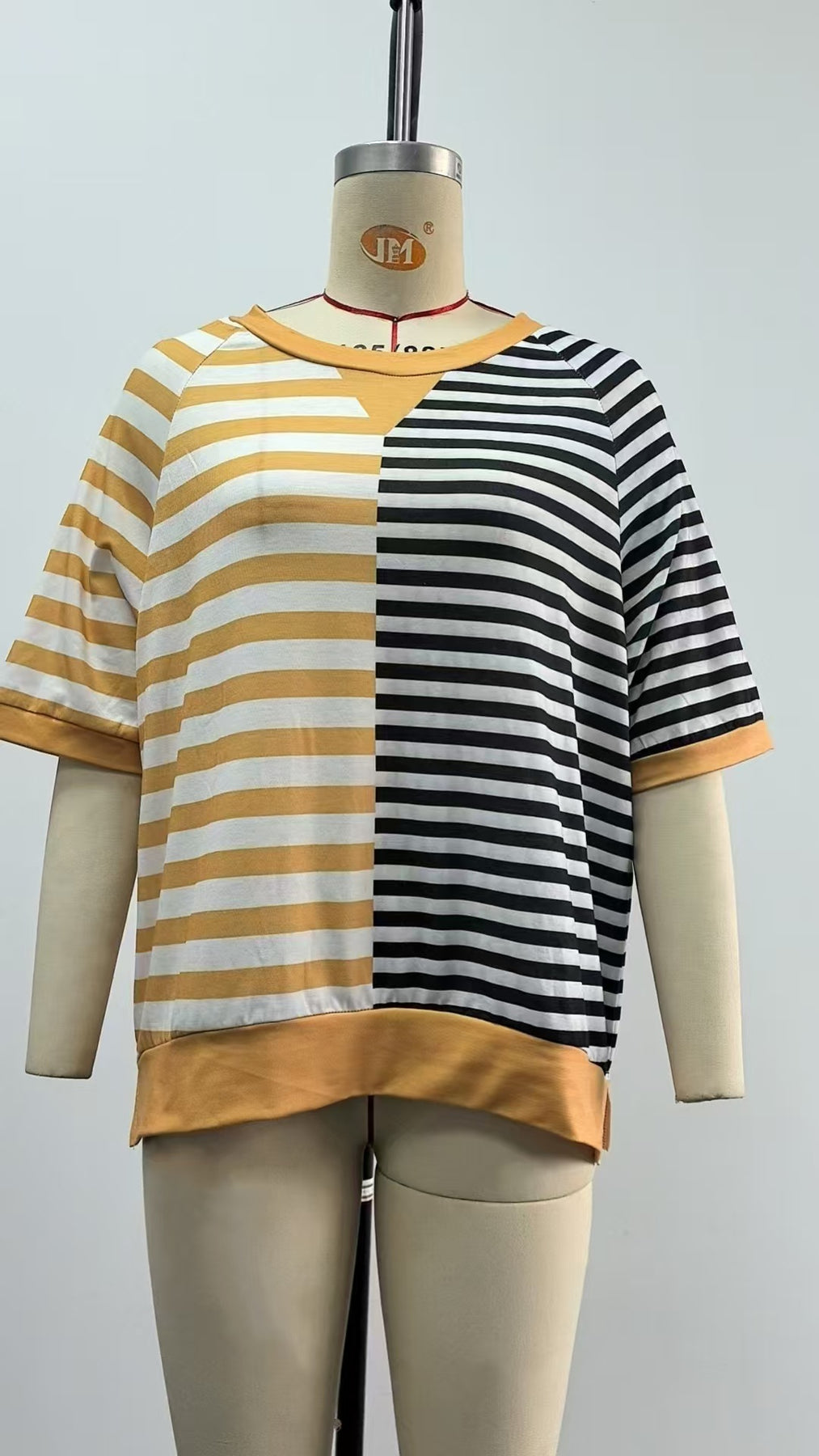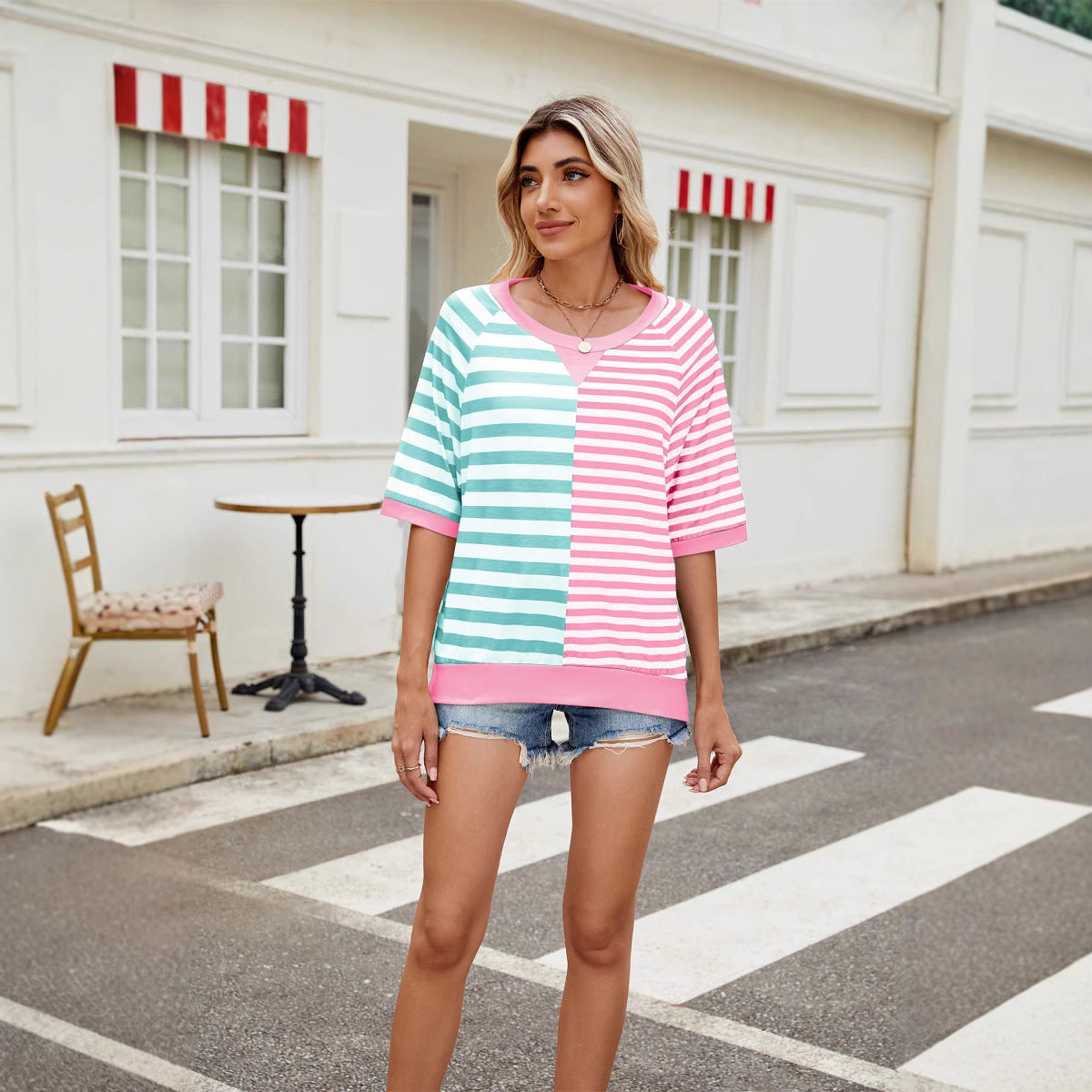 Heidi Mode | Gestreifte farblich passende Rundhalsausschnitt lose kurze Ärmel