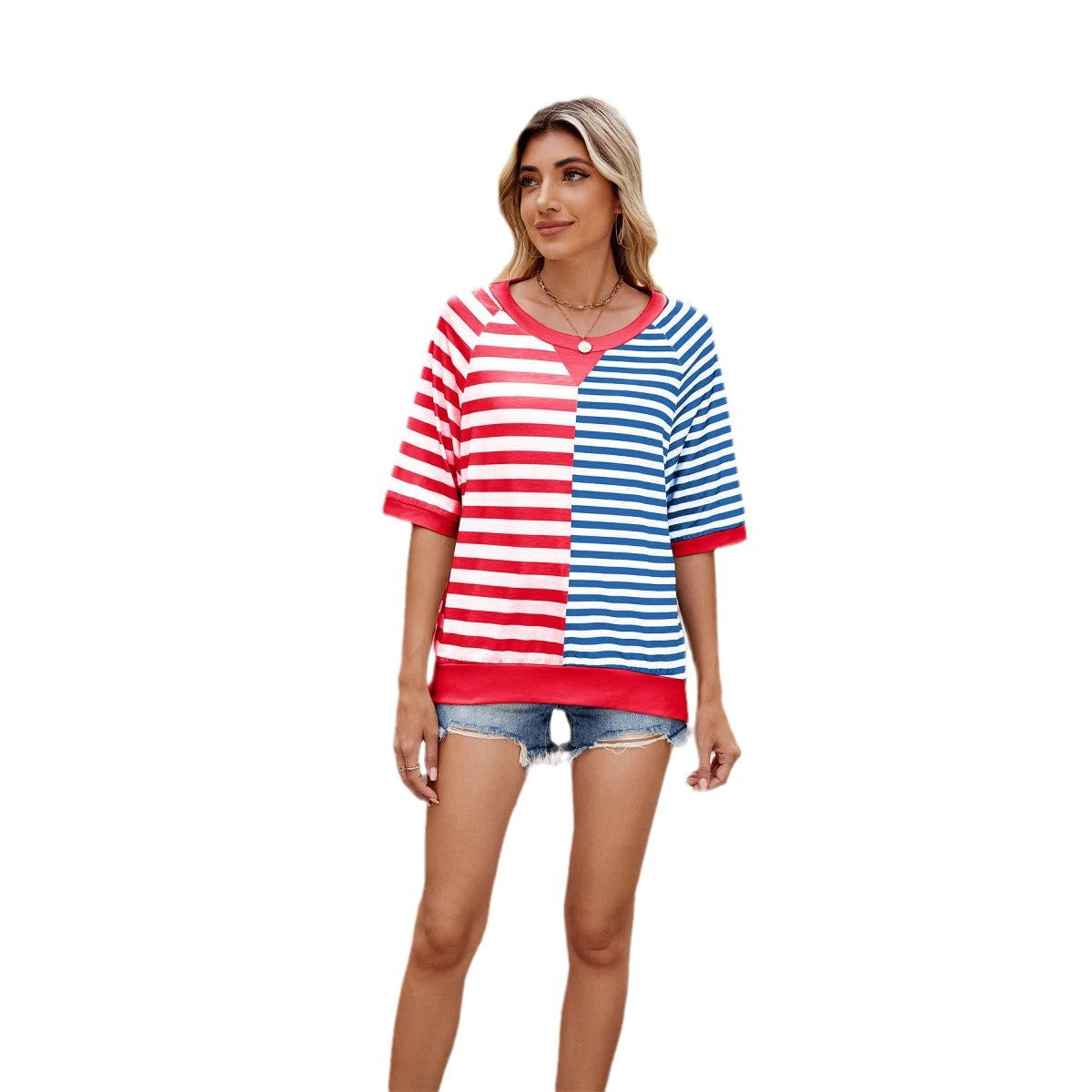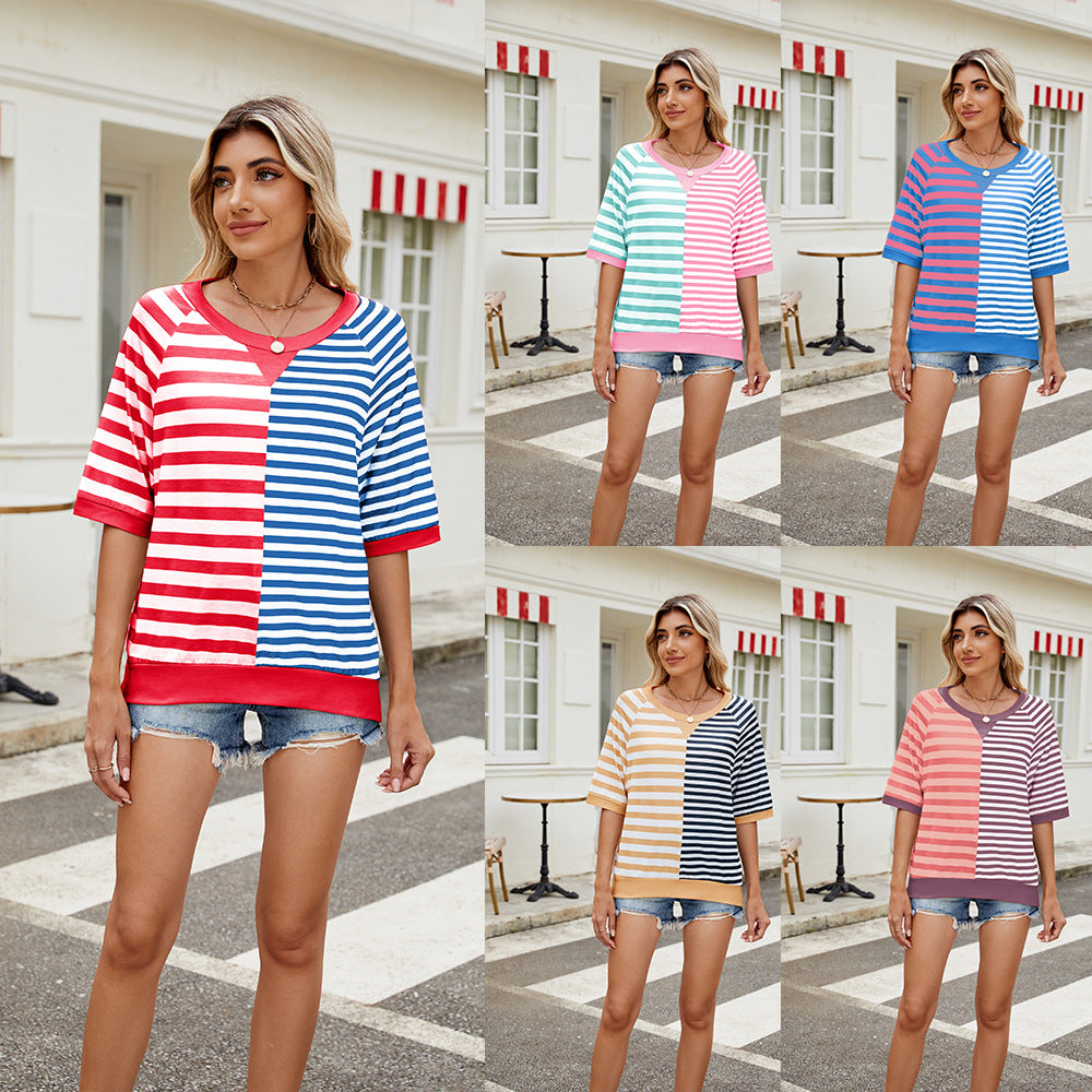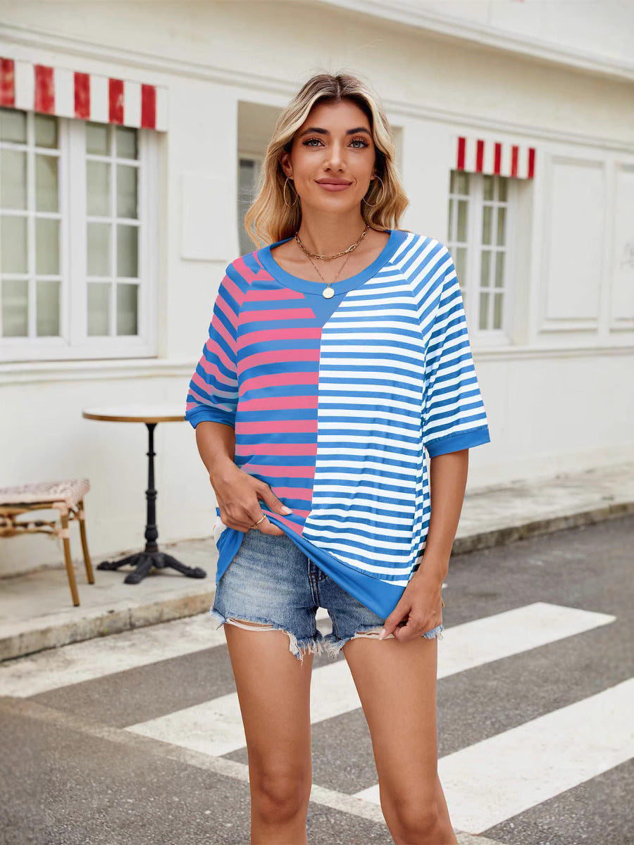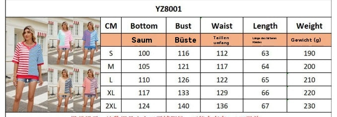 Heidi Mode | Gestreifte farblich passende Rundhalsausschnitt lose kurze Ärmel