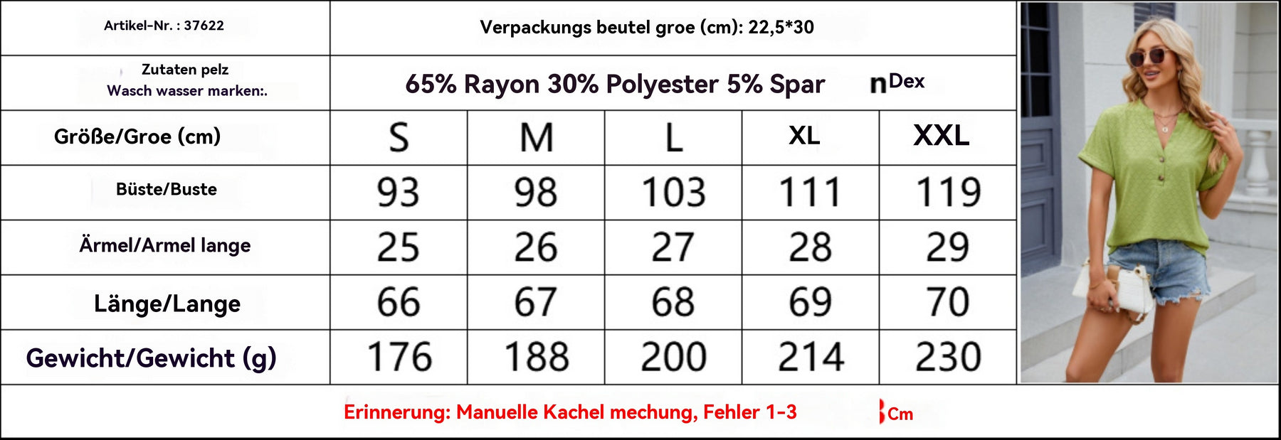 Heidi Mode | V-Ausschnitt Knopf Kurzarm