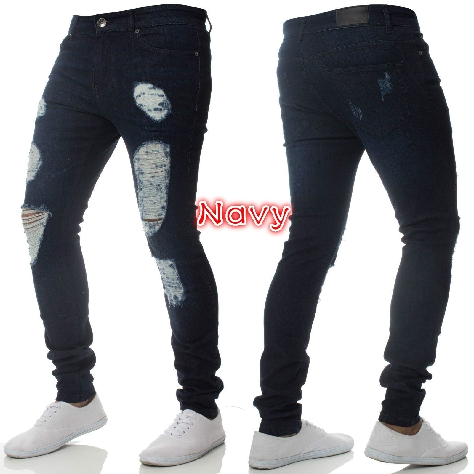 Herren Slim Fit Jeans im lässigen Destroyed-Look mit kontrastierenden Nähten Heidi-Mode