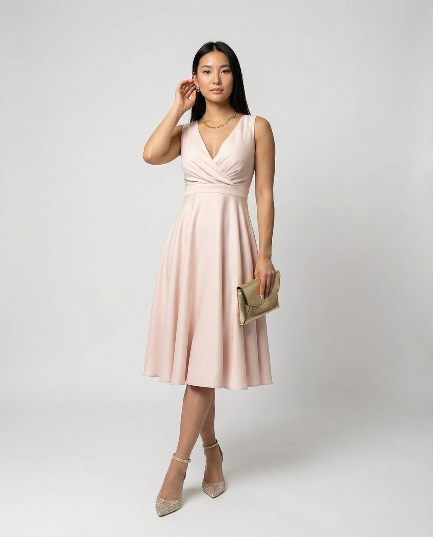 Midi-Kleid in A-Linie, Reißverschluss, Riemen, V-Ausschnitt, ärmellos, elegant, für Damen, Cocktailparty